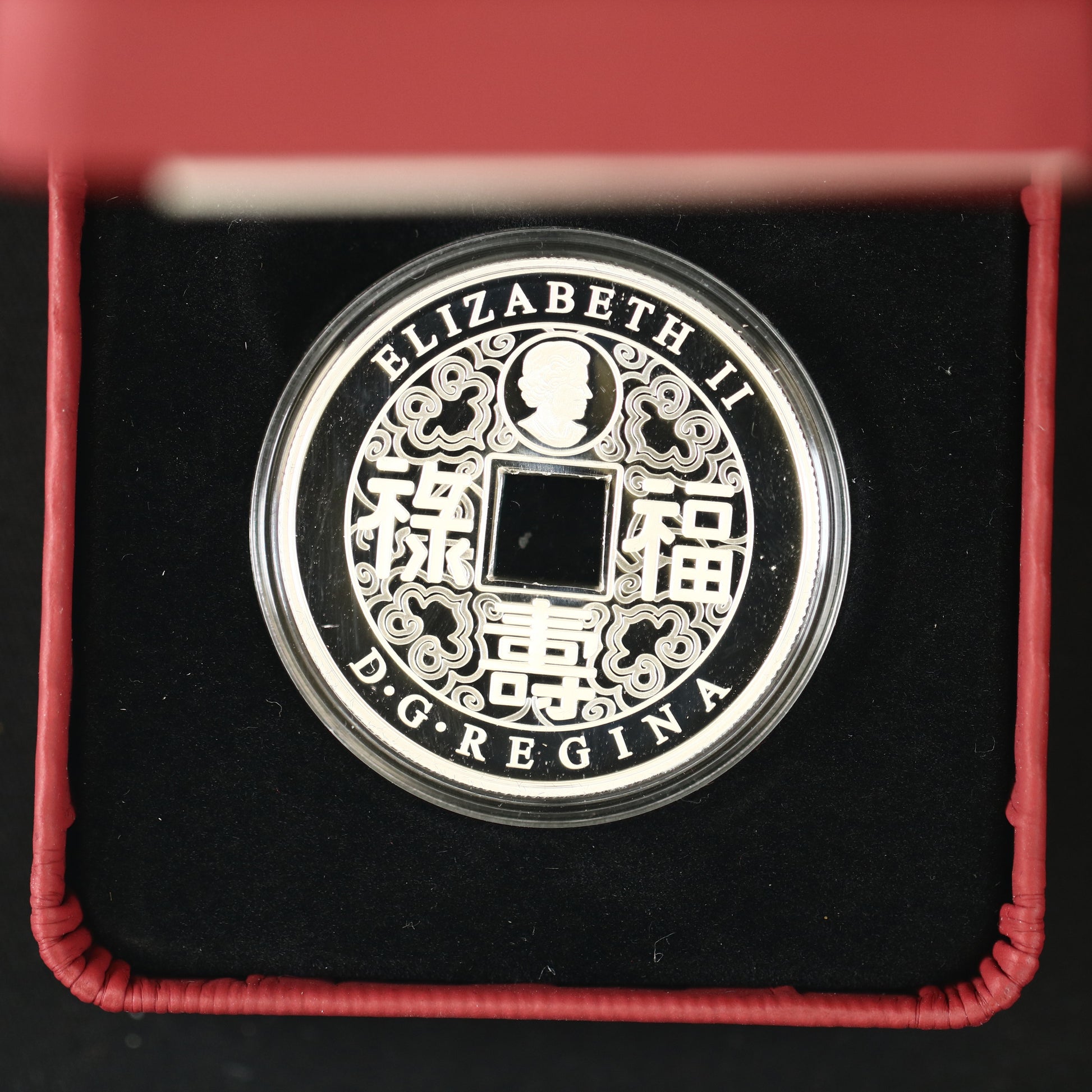 Reverse: The design incorporates Chinese characters that symbolize blessings and wealth.